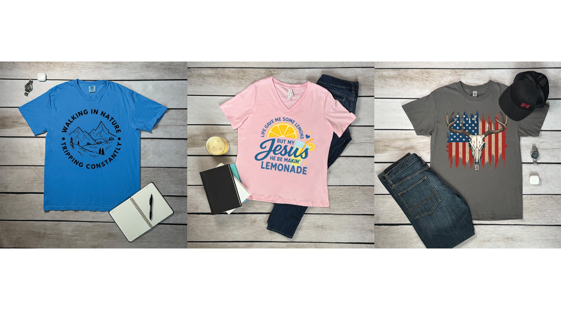 We use high-quality blank shirts from trusted brands: Gildan, Hanes, Comfort Colors, and Bella + Canvas. Each style is chosen for its comfort, durability, and fit.